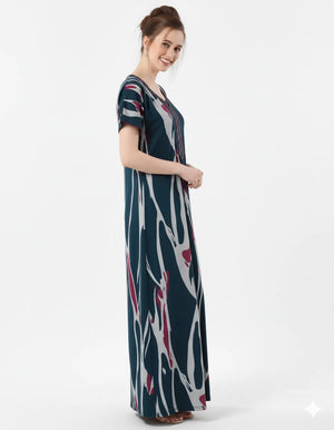 Slip into flowy, breathable 100% Rayon that drapes beautifully and feels cool on skin. Ankle-length, relaxed fit—perfect for sleep, lounging, and easy all-day comfort.