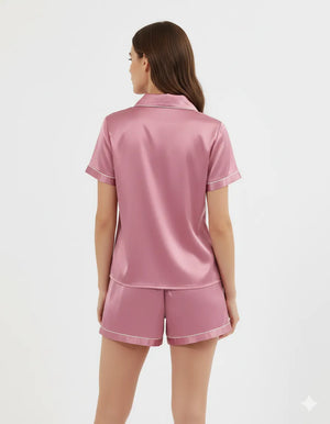 Arolisa Silky Satin Sleep Set – Short-Sleeve Shirt & Shorts