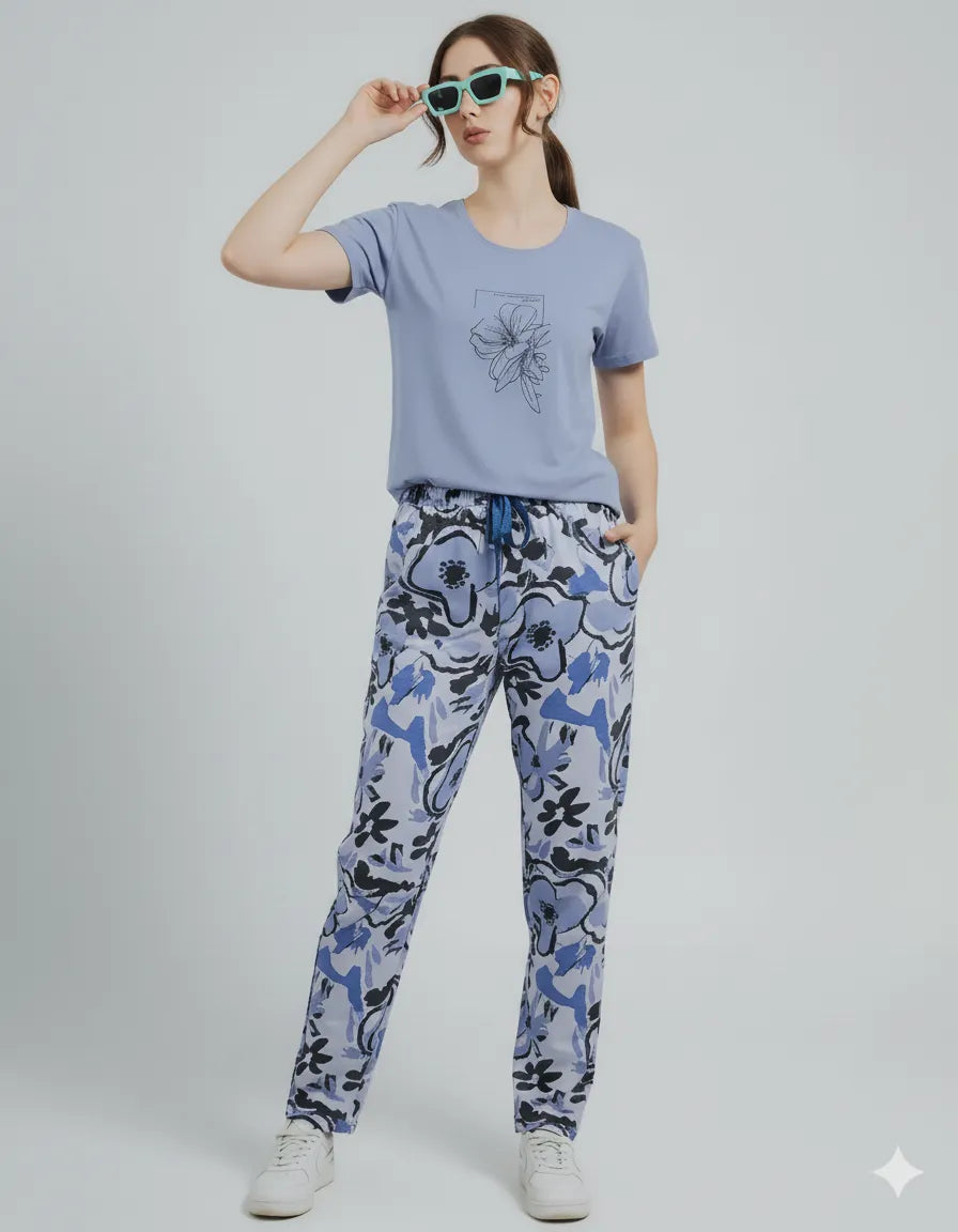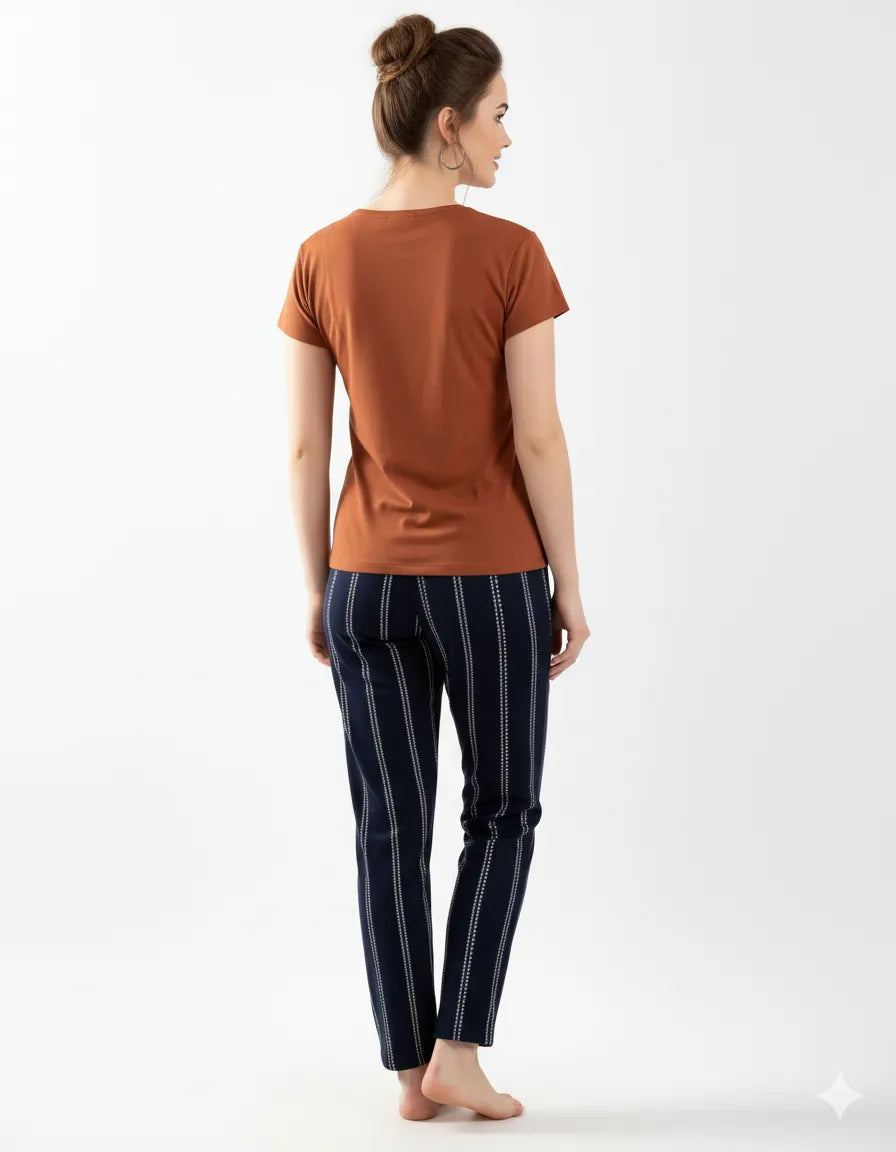 Arolisa Women’s Hosiery Lounge Set – Tee & Pyjama, Relaxed Fit