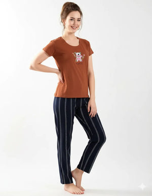 A soft, breathable 100% Rayon co-ord with a comfy tee and relaxed pyjamas. Easy to wear, easy to love—perfect for cozy nights and lazy mornings.
