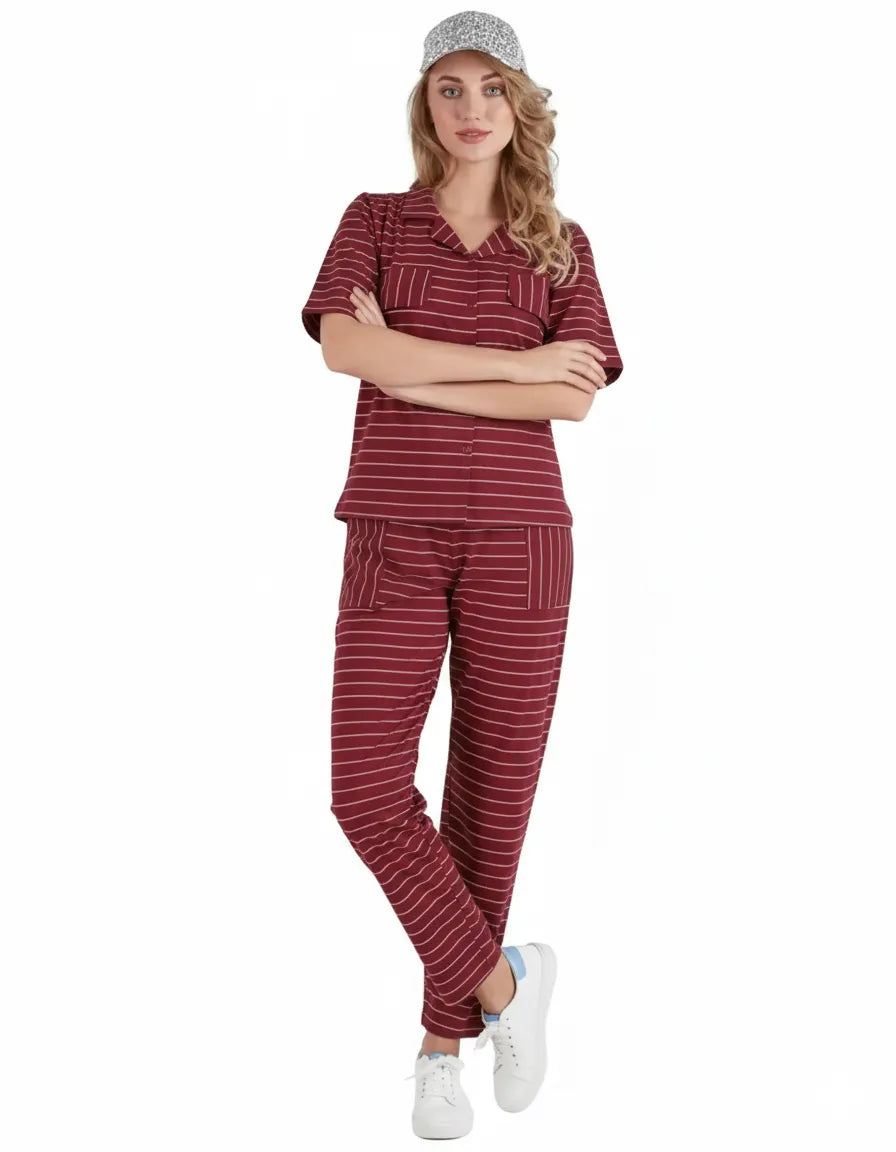 A soft, breathable 100% Rayon co-ord with a comfy tee and relaxed pyjamas. Easy to wear, easy to love—perfect for cozy nights and lazy mornings.