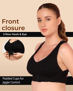 Elastic-free band and armholes prevent rashes or red marks—no mid-set adjusting. A supportive criss-cross back improves posture, and lightly padded cups add natural lift with reliable jiggle control.