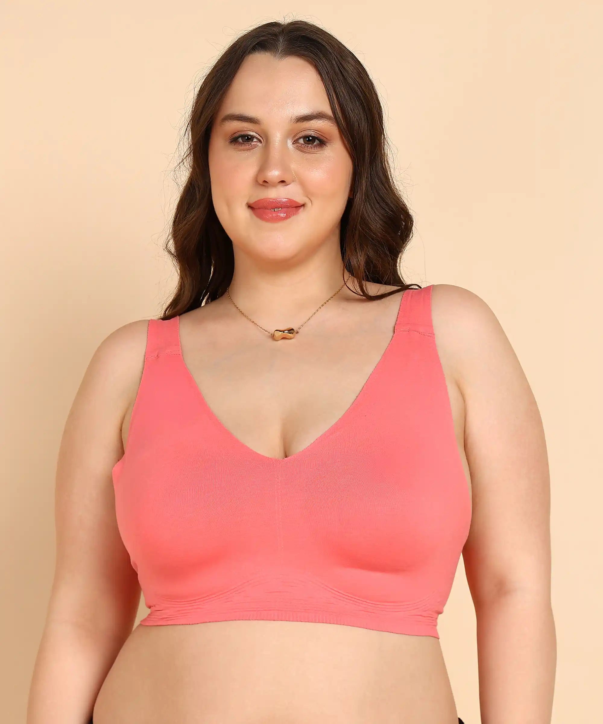 A bonded seamless bra is made without regular stitching. Instead, the fabric edges are joined using heat, making the bra smooth, irritation-free, and invisible under clothes. It’s lightweight, breathable, and offers gentle support—perfect for daily wear.