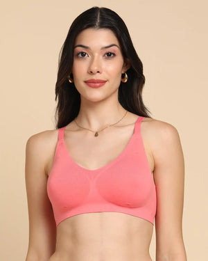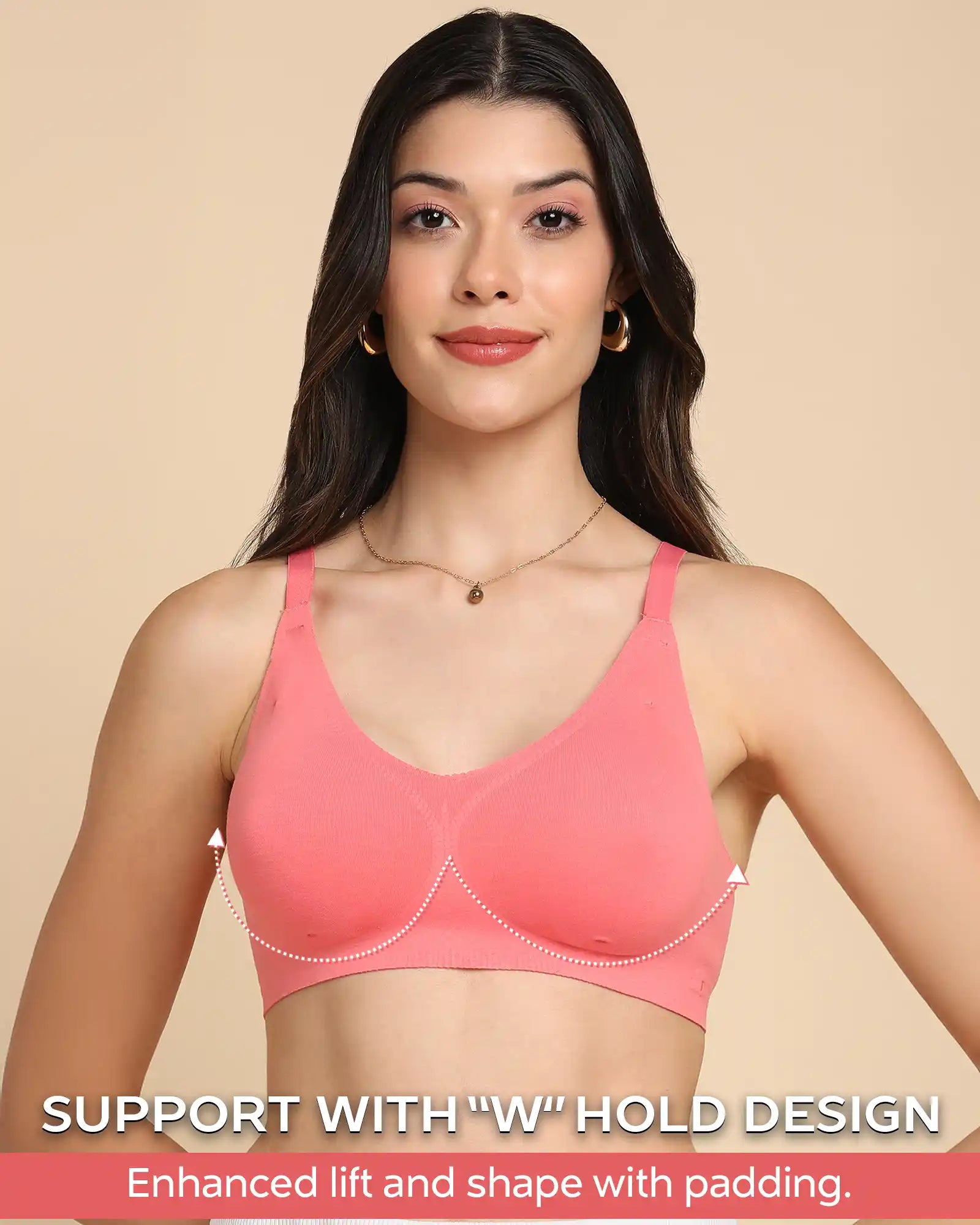 A bonded seamless bra is made without regular stitching. Instead, the fabric edges are joined using heat, making the bra smooth, irritation-free, and invisible under clothes. It’s lightweight, breathable, and offers gentle support—perfect for daily wear.