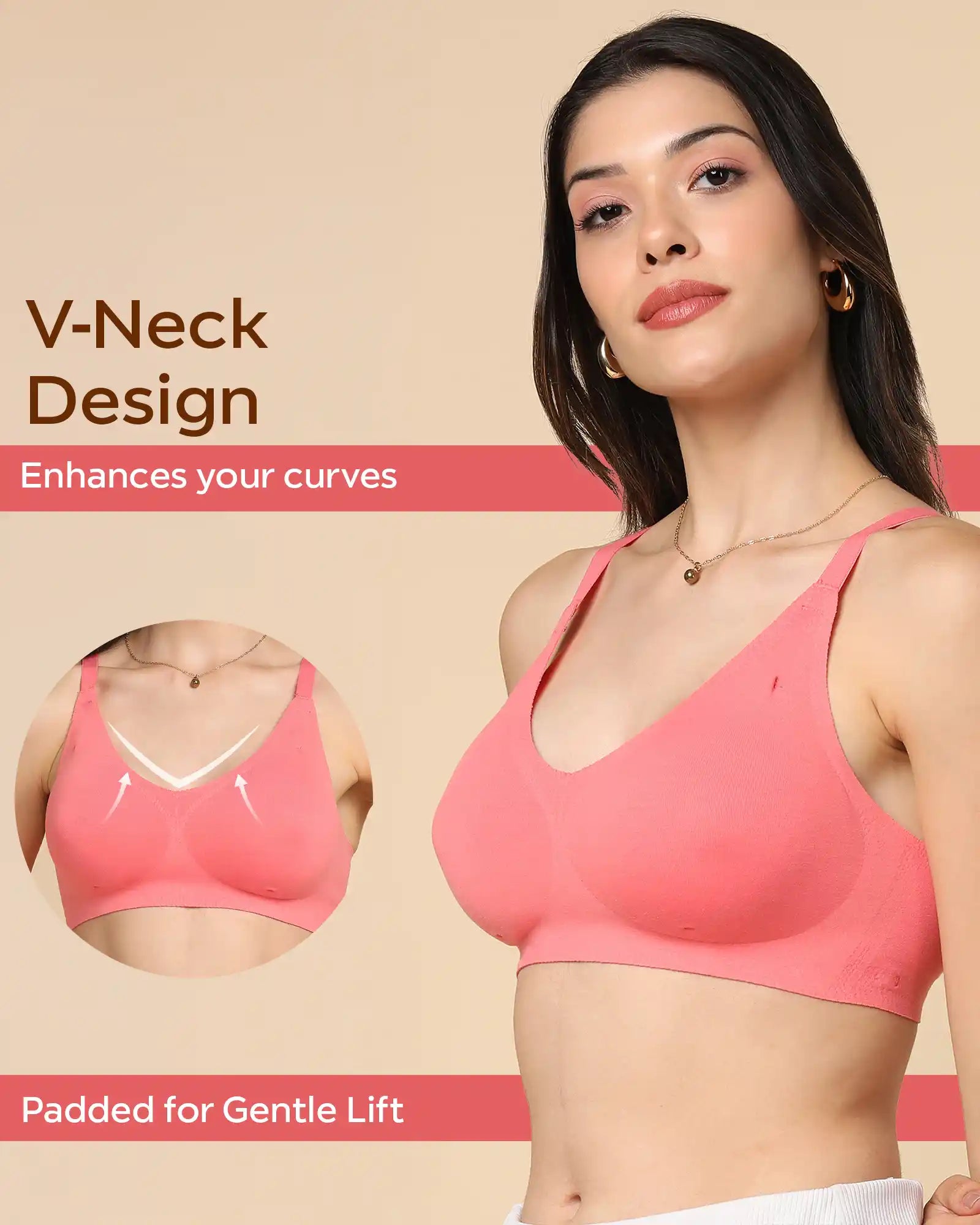 Bonded Bras are designed without wires, stitches, or elastic that can dig in. It’s super soft, seamless, and stays invisible under clothes, offering all-day support and comfort without any irritation.