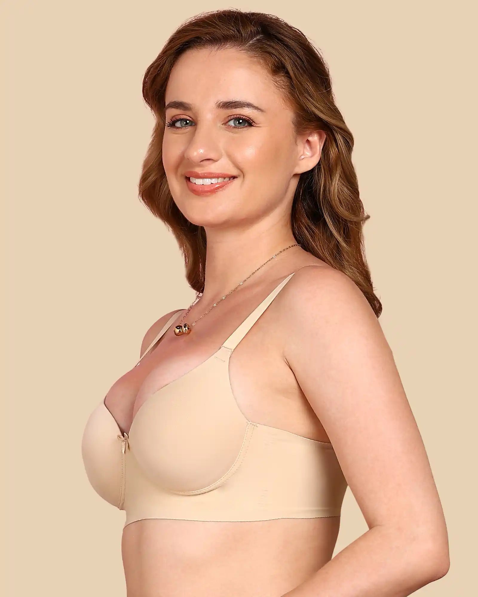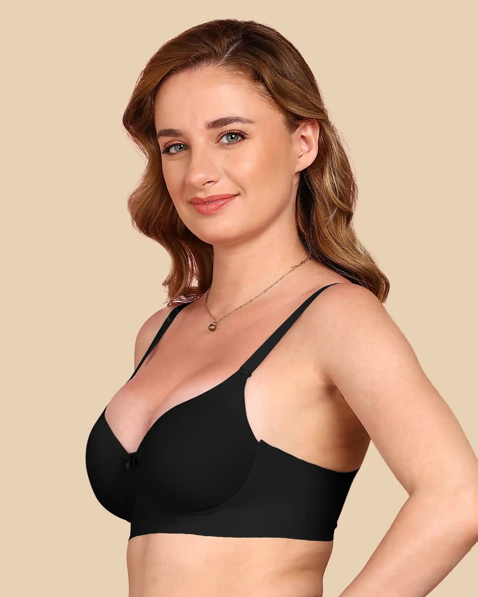 Turn up the confidence with the Tweens Bonded Seamless Push-Up Bra. Designed with advanced stitch-free bonding technology, it stays invisible under any outfit while giving you a smooth, flawless finish. Push-up cups add natural lift and volume for a rounded, fuller shape, while the elastic-free bottom band and armhole keep you free from digging, rashes and red marks. Breathable, skin-friendly fabric feels like a second skin, making this bra perfect for everyday wear or special occasions when you want extra definition with total ease.