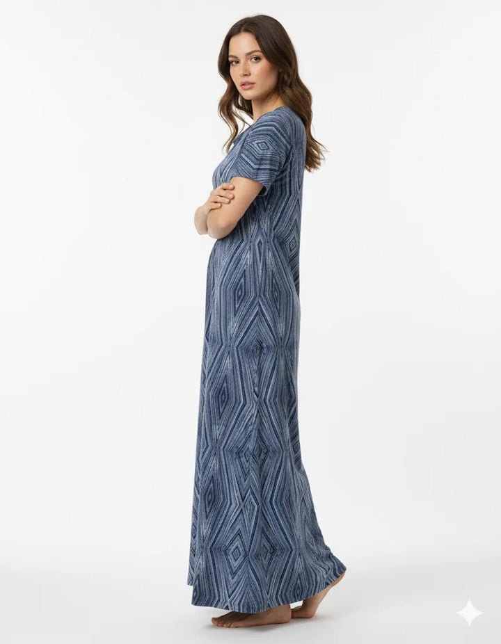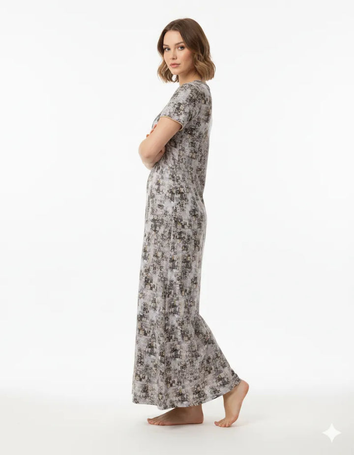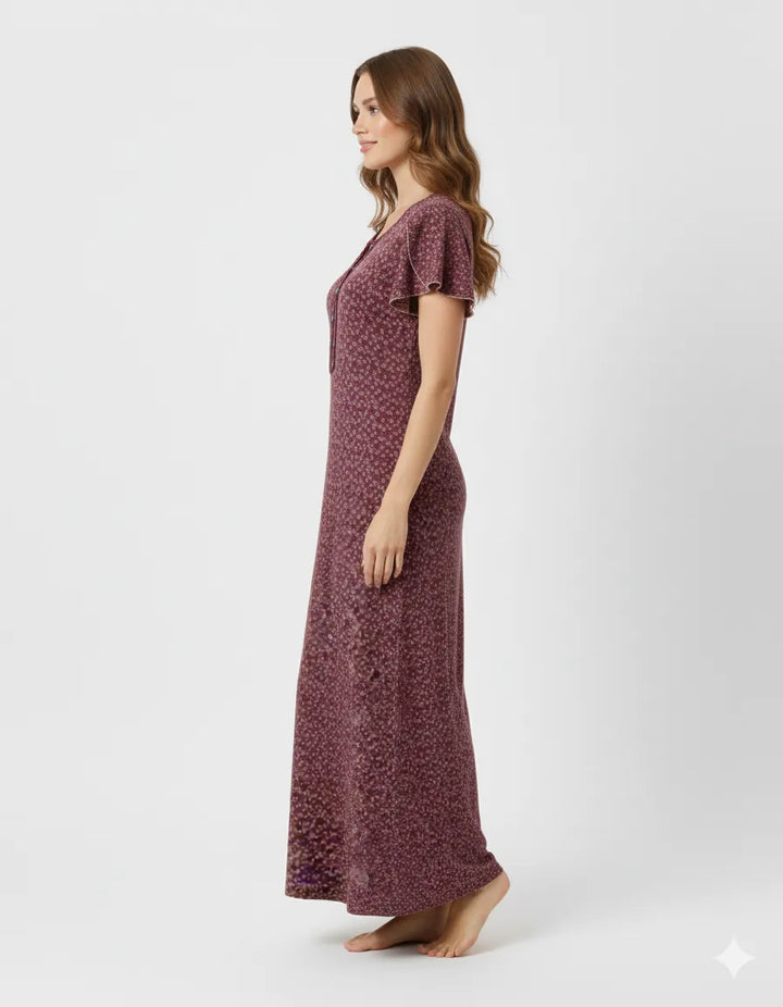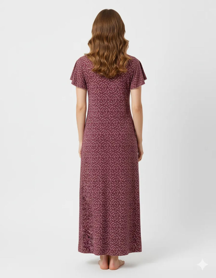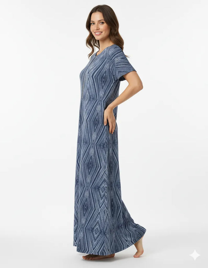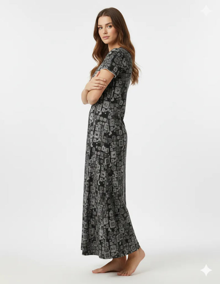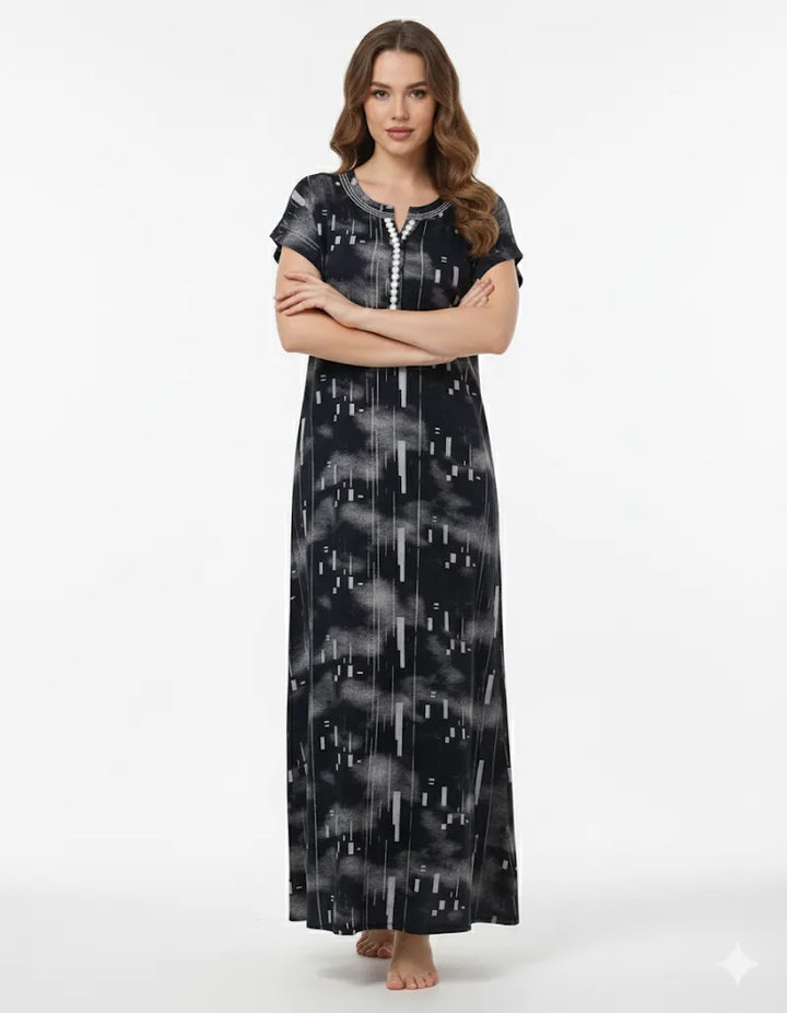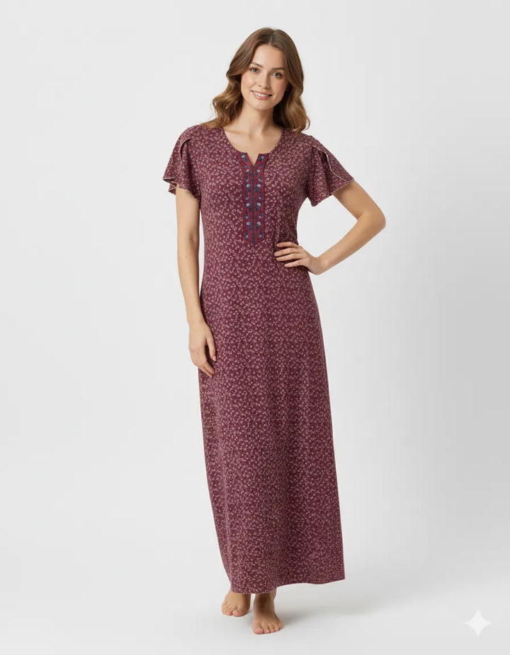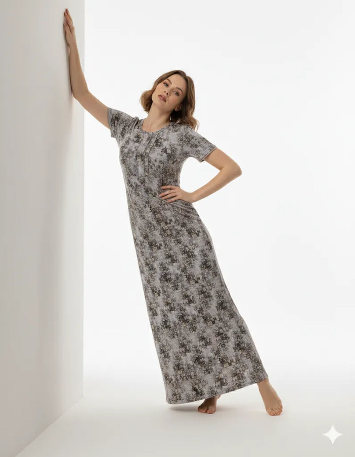 Slip into flowy, breathable 100% Rayon that drapes beautifully and feels cool on skin. Ankle-length, relaxed fit—perfect for sleep, lounging, and easy all-day comfort.