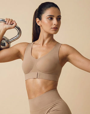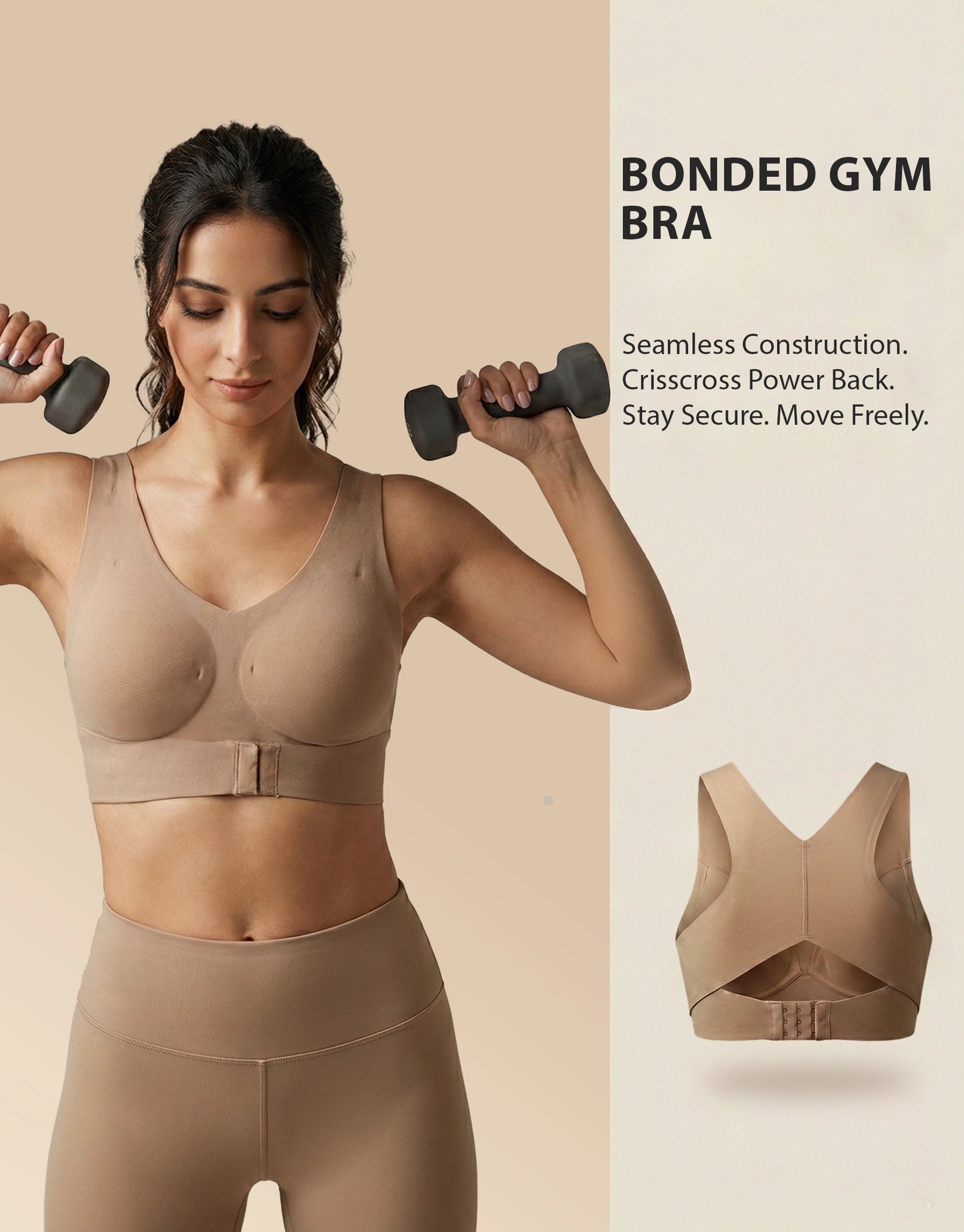 Bonded Gym Bra with Crisscross Back | Padded | Breathable Cotton (TW-SB-997)(Fawn)