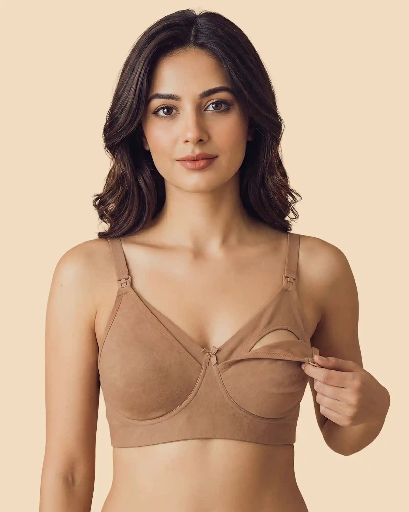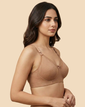 Tweens Bonded Cotton Feeding Bra is a thoughtfully designed feeding bra for Indian mothers, created to support long, nurturing days with ease. Made from soft, breathable cotton, this nursing bra ensures all-day comfort while being gentle on both the mother’s and baby’s sensitive skin. The bonded, stitch-free construction eliminates elastic from the underbust and armhole areas making it a truly seamless feeding bra, preventing irritation, red marks, and itchiness. Designed as a front-open feeding bra, the cups easily detach from the strap hooks for smooth, hassle-free feeding. Comfortable, skin-friendly, and practical, this maternity feeding bra is ideal for everyday wear.