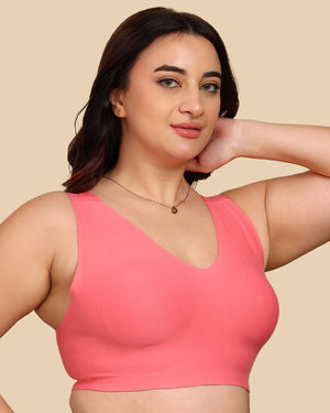 A bonded seamless bra is made without regular stitching. Instead, the fabric edges are joined using heat, making the bra smooth, irritation-free, and invisible under clothes. It’s lightweight, breathable, and offers gentle support—perfect for daily wear.