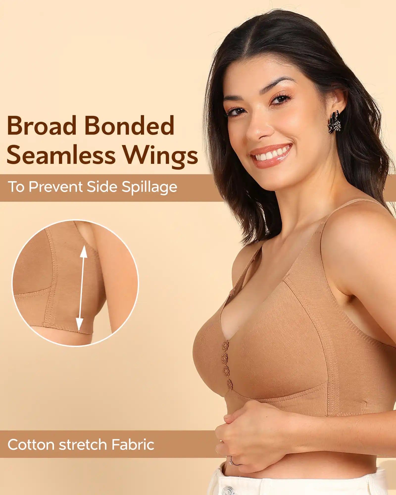 High-coverage cups and broad wings help control spillage for a clean, rounded silhouette under tees, kurtas, and fitted dresses. Lightweight, breathable fabric keeps you cool and comfortable—so you look smooth and feel free.