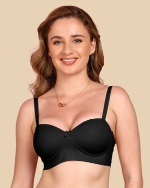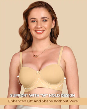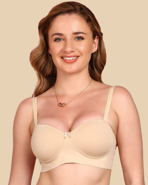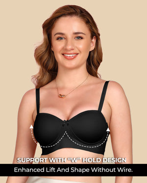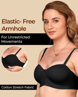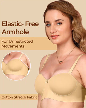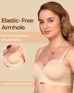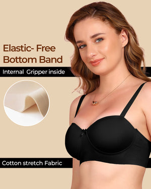 Enjoy the soft comfort of cotton with the sleek finish of bonded technology. This demi-cup padded bra gently shapes your bust, smooths out lines, and stays invisible under fitted tees and tops. With elastic-free bonding at the bottom band and sidewings, it gives you that clean, second-skin feel—no digging, no red marks, just easy all-day wear.