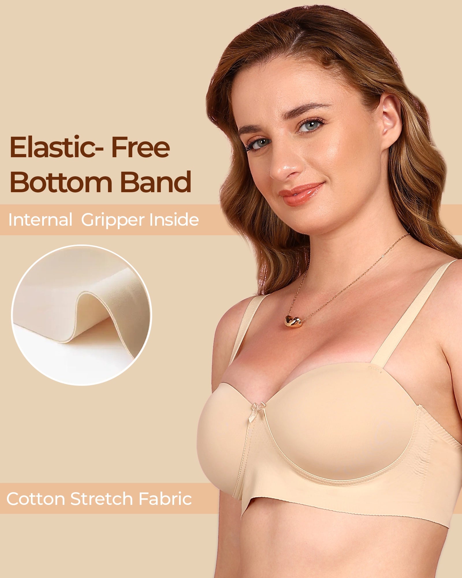 Bonded Bras are designed without wires, stitches, or elastic that can dig in. It’s super soft, seamless, and stays invisible under clothes, offering all-day support and comfort without any irritation.