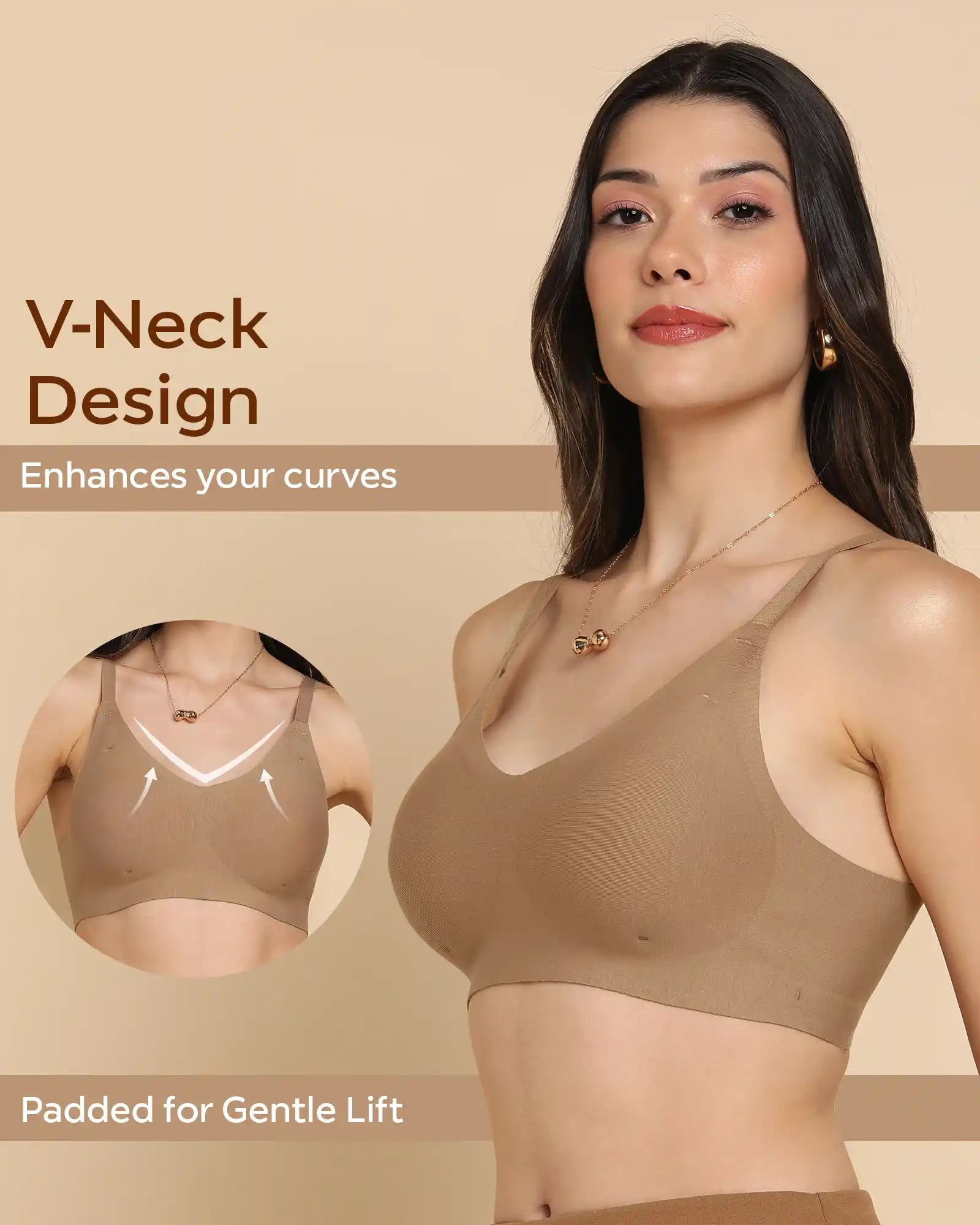Bonded Bras are designed without wires, stitches, or elastic that can dig in. It’s super soft, seamless, and stays invisible under clothes, offering all-day support and comfort without any irritation.