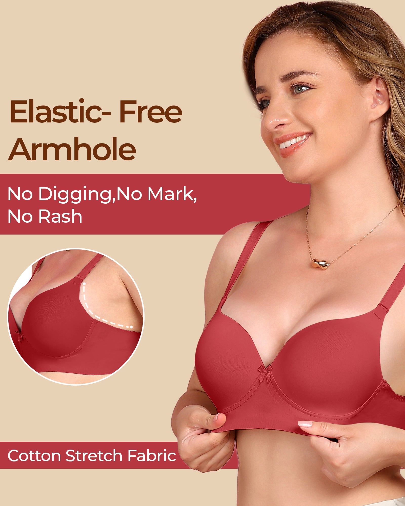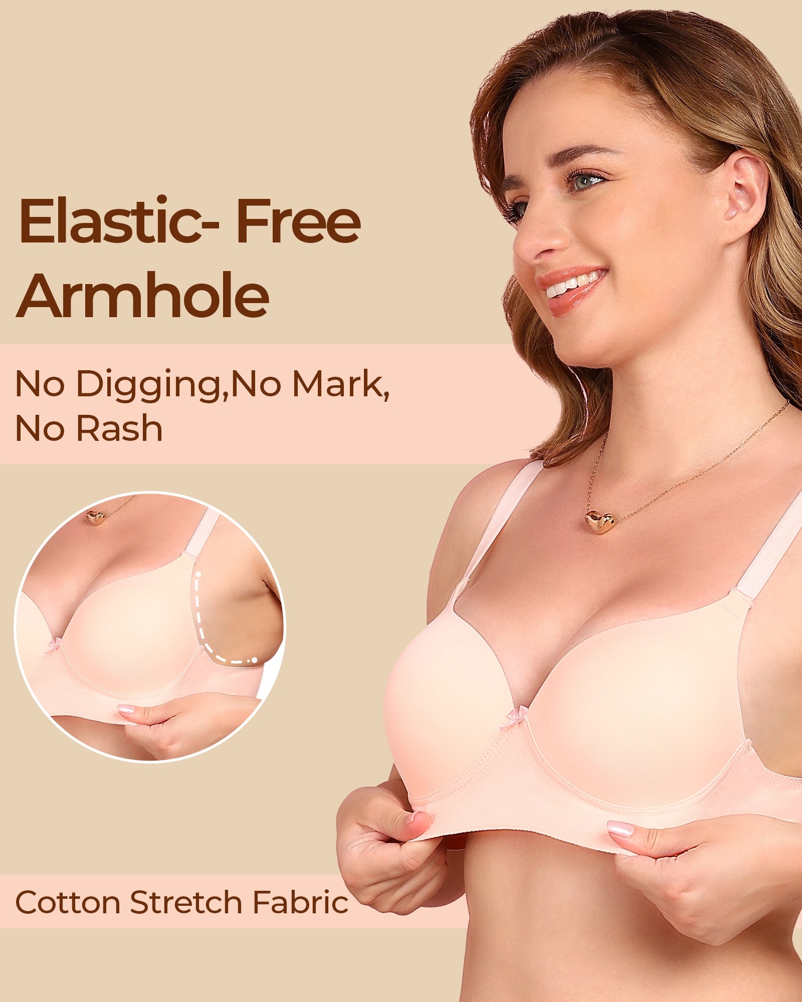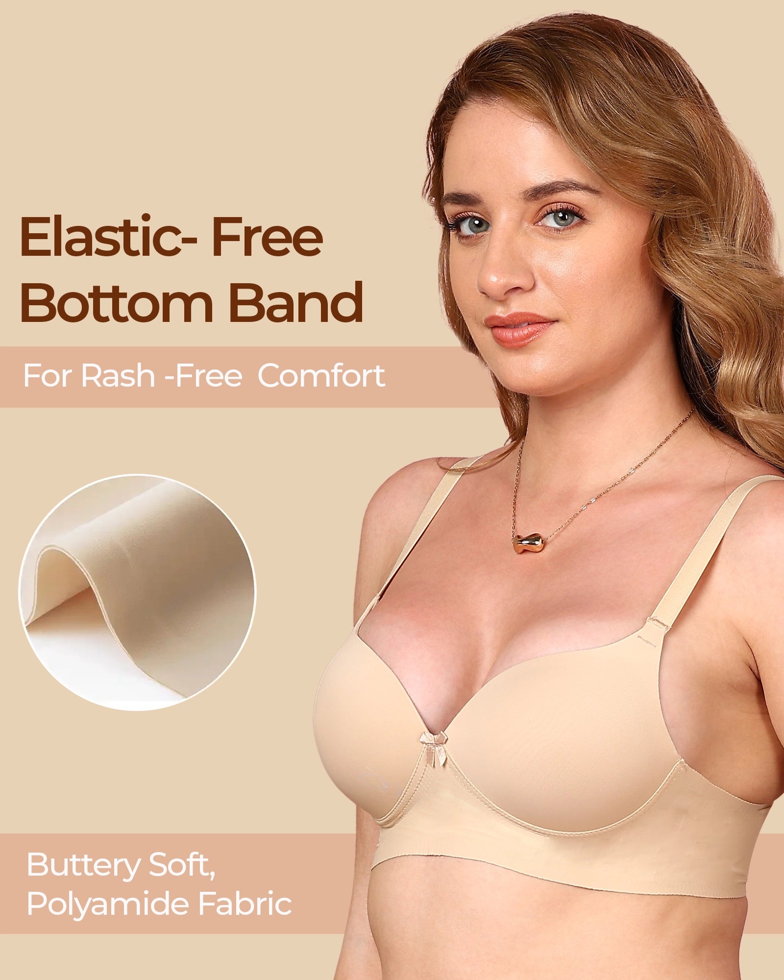 Bonded Bras are designed without wires, stitches, or elastic that can dig in. It’s super soft, seamless, and stays invisible under clothes, offering all-day support and comfort without any irritation.