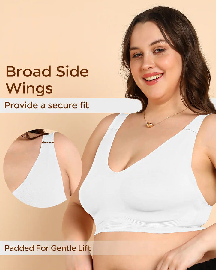 The elastic-free bottom band and armhole eliminate digging and red marks, delivering irritation-free comfort from morning to night. Whether you’re running errands, heading to work, or relaxing at home, this bra moves with you—no pinching, no pressure, just ease.