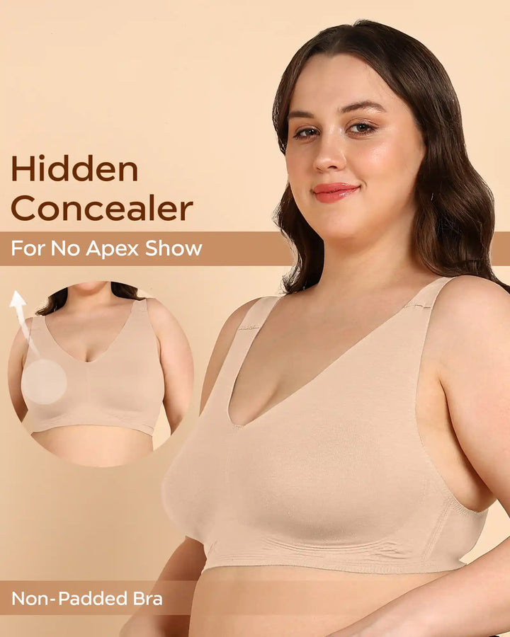 Its elastic-free bottom band and armhole eliminate common bra problems—no digging, pinching, or red marks—offering freedom of movement and rash-free wear, whether you’re working, traveling, or lounging at home.