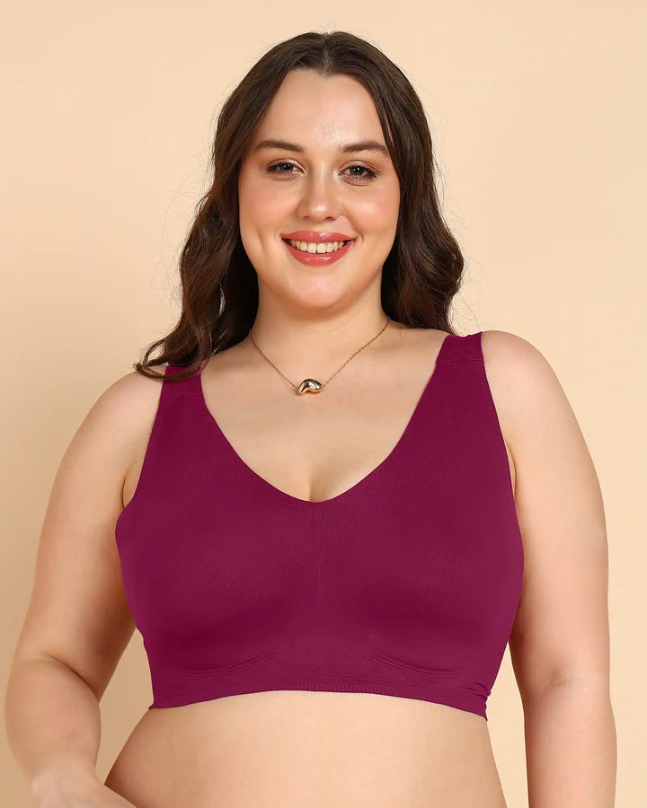 A bonded seamless bra is made without regular stitching. Instead, the fabric edges are joined using heat, making the bra smooth, irritation-free, and invisible under clothes. It’s lightweight, breathable, and offers gentle support—perfect for daily wear.